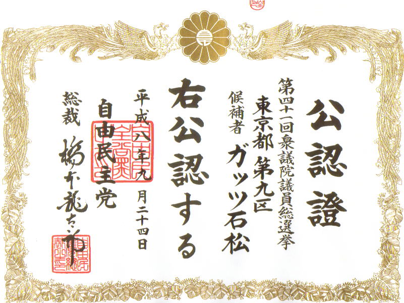 96年10戟@第1回 衆議院小選挙区比例代表並立制選挙出馬