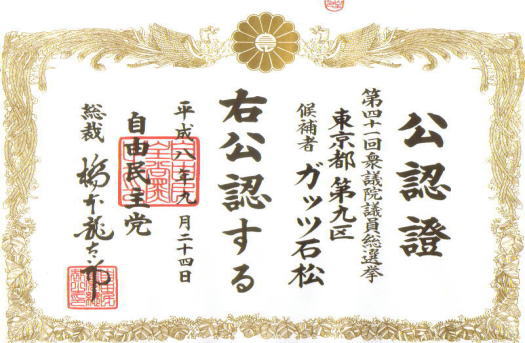 96年10月 第1回 衆議院小選挙区比例代表並立制選挙出馬